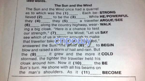 1. Strongest 2. Himself 3. Most powerful 4. Were arguing 5. Saw 6. Walking 7. Said 8. Began 9. Colder 10. Was 11. Became 12. Hotter 13. Hotter 14. Took 15. Won