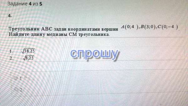 Точка М является серединой стороны АС. Найдем координаты середины отрезка АС. А(0; 4), С(0; -4); М(0;0).