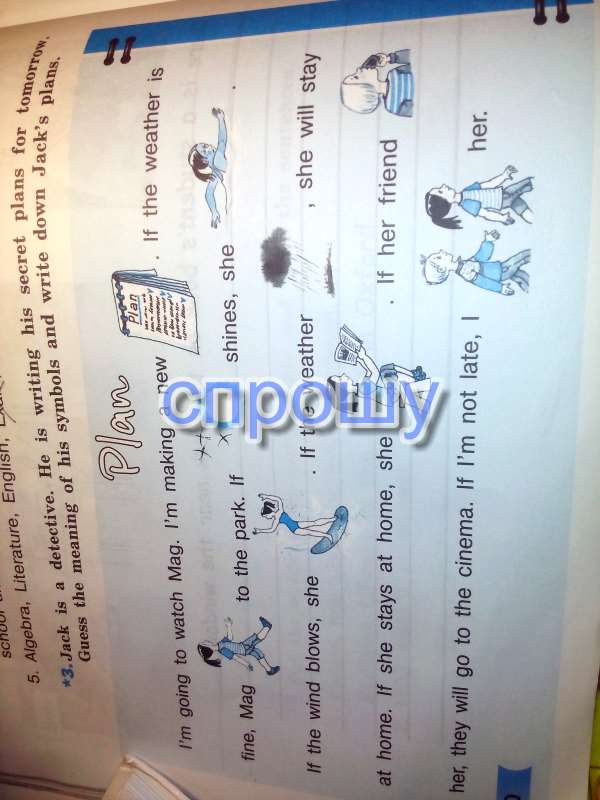 Джек детектив. Он пишет секретные планы на завтра. Угадай значения картинок и напиши планы Джека.