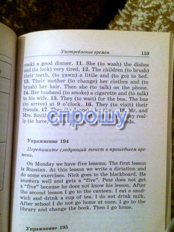 On Monday we had five lessons. The first lesson was Russian. At this lesson we wrote a dictation and did some exercises. Nick went to the blackboard. He answered well and got a five. Pete did not get a five because he did not know his lesson. After the second lesson i went to the canteen. I ate a sandwith and drank a cup of tea. I did not drink milk. After school i did not go home at once. I went to the library and took a book. Then i went home.