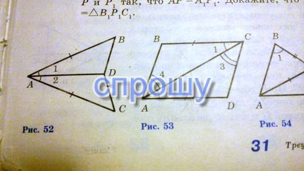 На рисунке 53 BC = AD, угол 1 = углу 2. а) Докажите, что треугольники ABC и CDA равны. б) Найдите AB и BC, если AD = 17 см, DC = 14 см.