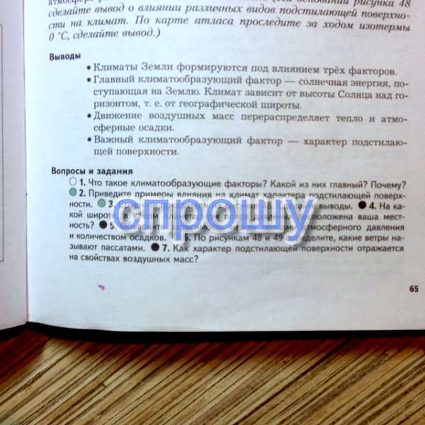 1)Климатообразующие факторы – факторы формирующие климат ( географическая широта, атмосферная циркуляция, радиационный баланс Земли, циркуляция атмосферы и гидросферы, характер подстилающей поверхности: рельеф, изрезанность побережья, удаленность от океанов и морей и т. д.)
