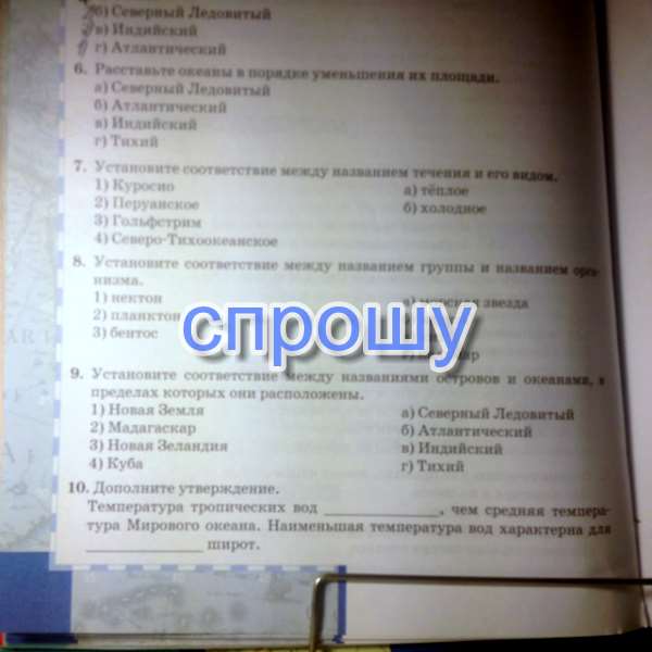 Установите соответствие между названиями островов и океанами, в пределах которых они расположены. Номер 9