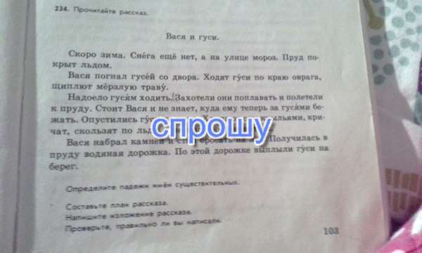 мороз,пруд-и.п;льдом- т.п;Вася-и;гусей -р;