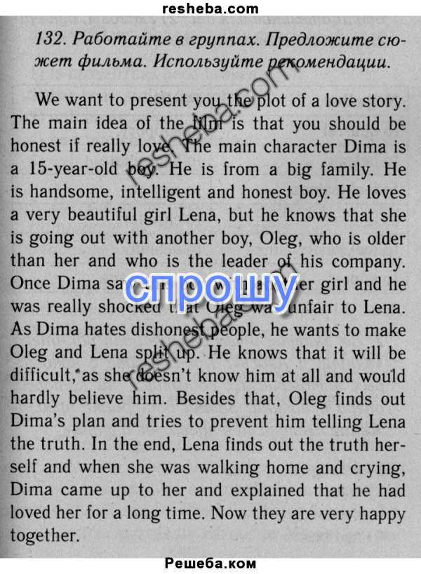 Мы хотим вам представить сюжет любовной истории.Основная идея этого фильма в том,чтобы вы были искренними в любви.Главному герою Диме 15 лет.Он из большой семьи.Он красивый,умный и честный мальчик.Он любит очень красивую девушку по имени Лена,но он знает,что она гуляет с Олегом,который старше ее и он лидер их компании.Как то раз,Дима увидел Олега с другой девочкой и он удивился,что Олег не боится Лены.Так как Дима ненавидит нечесность в людях,он решил поссорить Лену с Олегом.Он знал,что это будет легко.После этого,Олег узнал планы Димы и рассказал всю правду Лене.Лена расстроилась,заплакала и убежала домой.Дима сразу же пришел к ней и бъяснил,что давно ее любит.Сейчас,они очень счастливы.