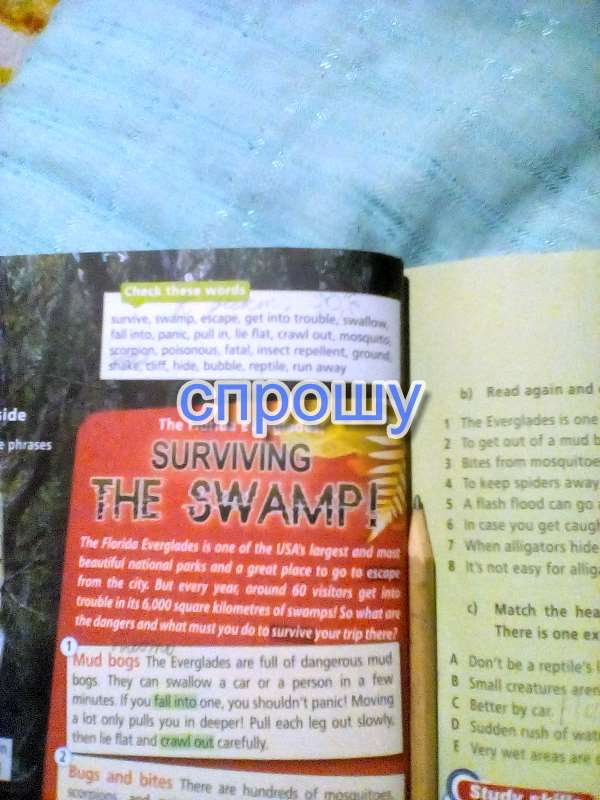 Флорида Эверглейдс: Выживающее болотоФлорида Эверглейдс один из самых больших и самых красивых парков США и отлично место, чтобы сбежать от города. Но каждый год около 60 посетителей попадают в неприятности в его 6 тысячах квадратных километрах болот.Так в чем опасность и что вы должны делать, чтобы выжить в вашем путешествии здесьГрязевые трясины. Эверглейдс Полон опасных грязевых трясин. Они могут поглотить машину или человека за несколько минут. Если вы упали в одну из них, вы не должны паниковать! Много движений будет только втягивать вас глубже! Вытащите медленно каждую ногу, затем лягте ровно и вылезайте аккуратно.