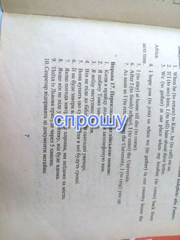 Перекладіть англійською мовою,вживаючи дієслова Present Simple чи Future Simple (впр.17)