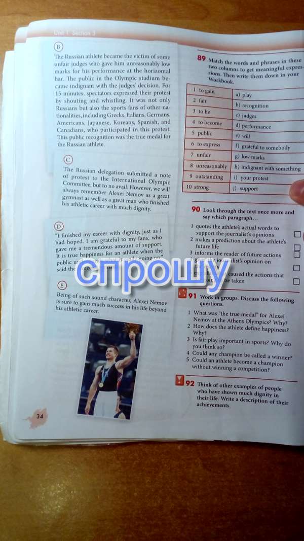 89) 1j, 2a, 3f, 4h, 5b, 6i, 7c, 8g, 9d, 10e. 90) 1d, 2e, 3c и е тоже можно как бы, 4e и с тоже немного может быть, потому что точно нельзя сказать что пряв все его так воспринимать будут, это только мнение автора, 5b. А там "а" текста нет