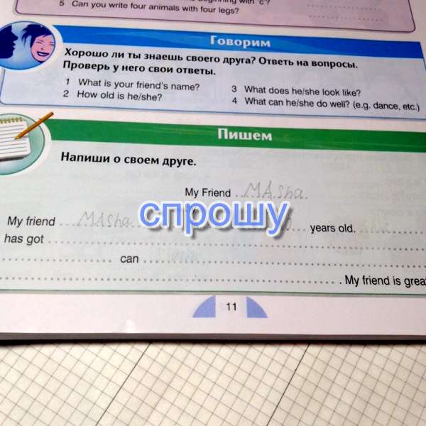 My friend Masha is 10 (ten) years old. He has got a big family, he can help me with my problems. My friend is great!