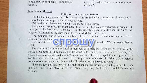 Парламент — главный государственный орган Британии. Он состоит из трех частей: Монарх, Палата Лордов и Палата Общин. Палата Общин — фактически единственный государственный орган, обладающий реальной властью.