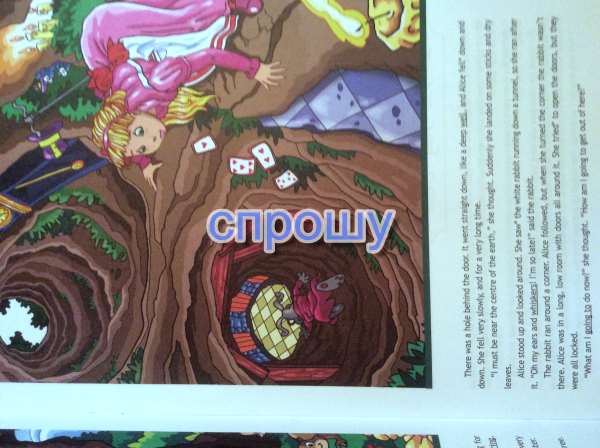 За дверью была дыра. она направлялась вниз по прямой, как глубокий колодец, и Алиса всё падала глубже и глубже. Она падала очень медленно и очень долго.