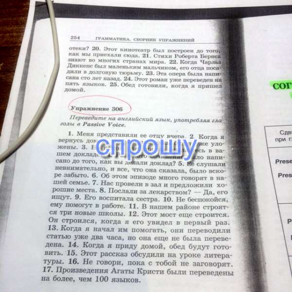 Exercise №306. Перевести на английский язык, употребляя глаголы в Passive Voice