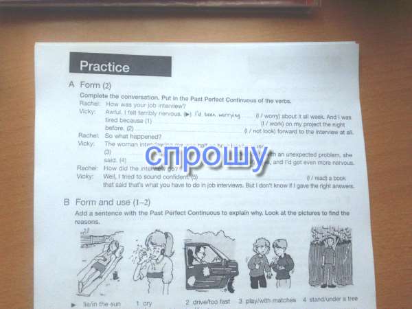 A.1. id beem working; 2. i hadnt been looking; 3. shed been dealing; 4. id been waiting; 5. id been readingb. 1. shed been crying; 2. hed been driving too fast; 3. theyd been playing with matches; 4. hed been standing under a tree