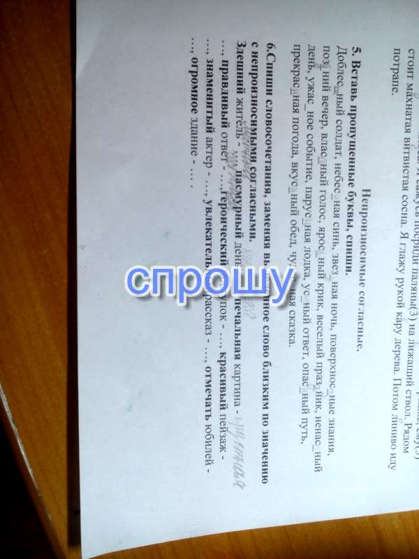 5. Доблестный солдат, небесная синь, звездная ночь, поверхностные знания, поздний вечер, властный голос, яростный крик, веселый праздник, ненастный день, ужасное событие, парусная лодка, устный ответ, опасный путь, прекрасная погода, вкусный обед, чудесная сказка.