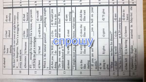 10) с 11)а 12)а 13)d 14)a 15)d 16)c 17) b 18) is getting