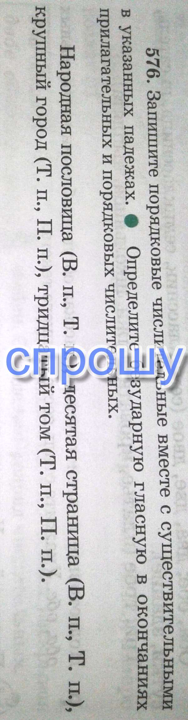 Народную пословицу, народной пословицей; десятую страницу, десятой страницей; крупным городом, о крупном городе; тридцатым домом, о тридцатом доме