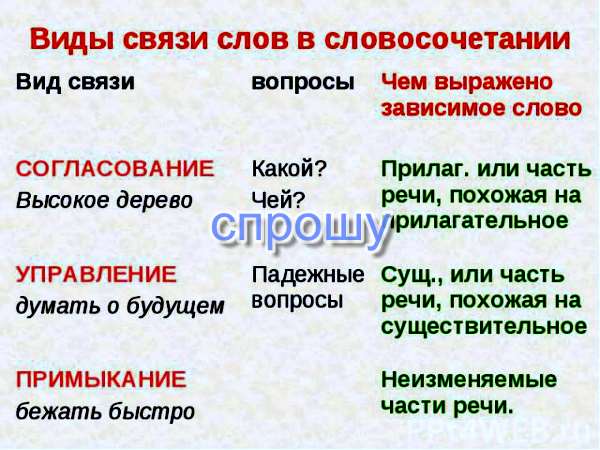 Прикрепляю виды связи,наверное стоит разложить на словосочетания.