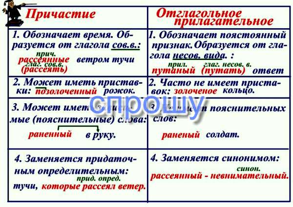 Составте алгоритм на тему причастия и отглагольные прилагательные