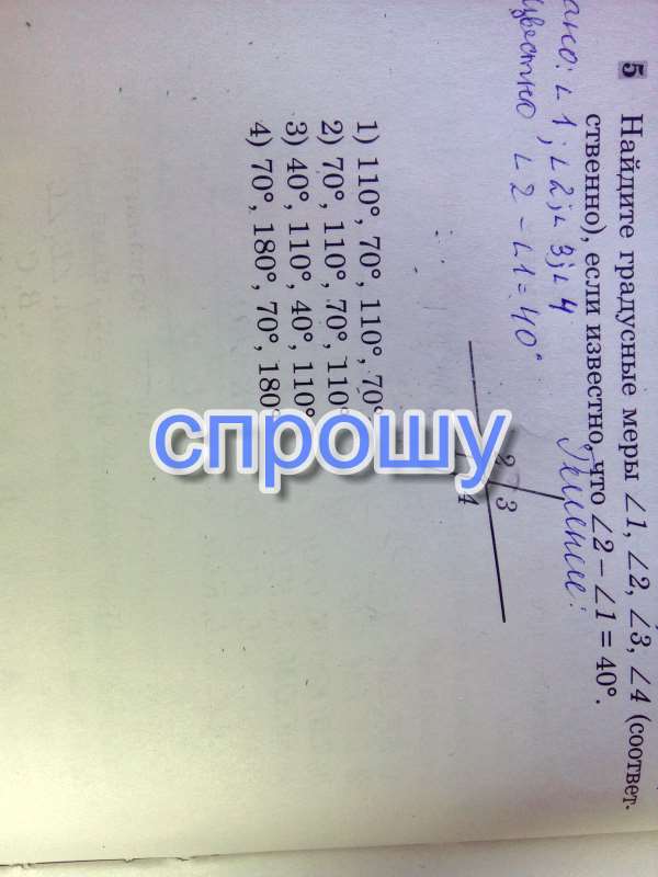 2-1=40. Углы 2 и 1 смежные и являются частями развернутого угла, равного 180 гр.
