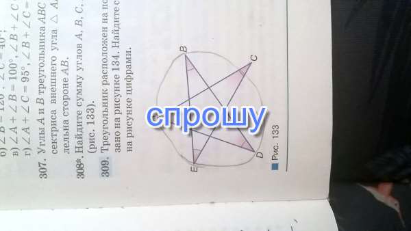 Найти сумму углов A,B,C,D,E пятиугольной звезды