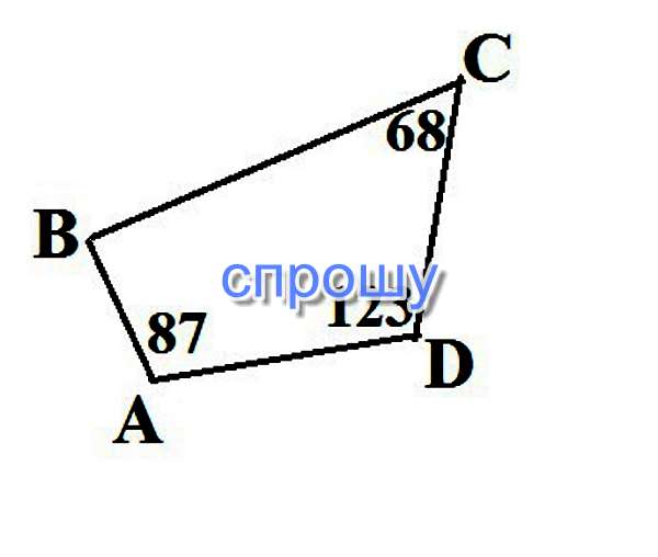 Чему равен четвертый угол четырёхугольника, если три его угла соответственно равны 68; 87; и 123 градуса;