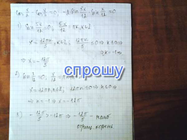 Cos x/2-cos x/3 = 0 в ответ запишите наибольший отрицательный корень уравнения