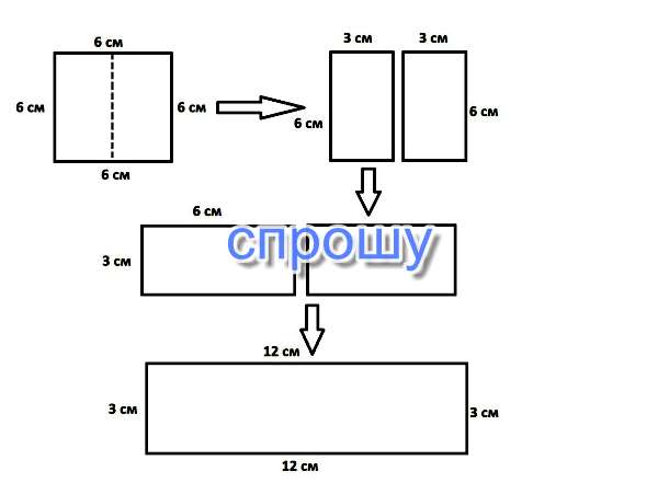 Как необходимо разделить квадрат со стороной 6 см на 2 части ломаной линии, которая содержит 3 части, чтобы можна было бы получить прямоугольники