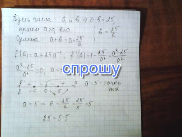 число 25 запишіть у вигляді добутку двох додатних чисел сума яких є найменшою