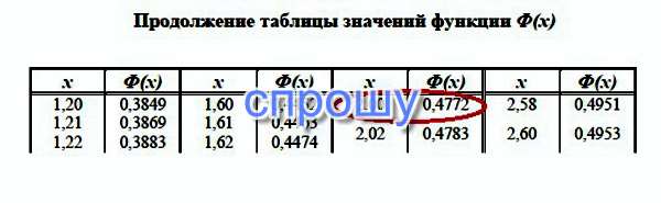 По таблице значений функции Ф(t) находим (саму таблицу можно найти в любом учебнике по математической статистике)