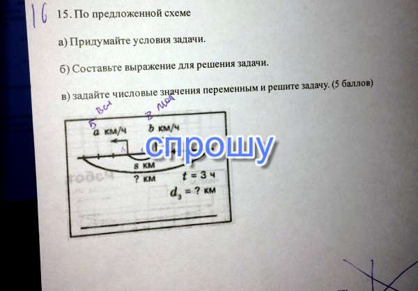 Из пунктов А и В, расстояние между которыми 8 км, одновременно в разных направлениях выехали велосипедист и мотоциклист (лучше взять пешехода и велосипедиста или двух пешеходов - так будет правдоподобнее). Скорость велосипедиста 5 км/ч, мотоциклиста 8 км/ч. Какое расстояние будет между ними через 3 часа