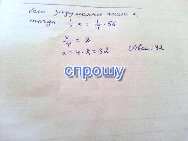 Четверть задуманного числа равна 1/7 от 56.Какое числозадумано