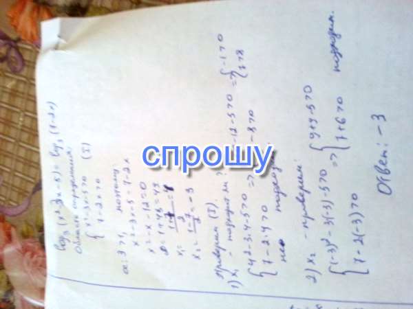 Log3 (x^2-3x-5) = log3 (7-2x)