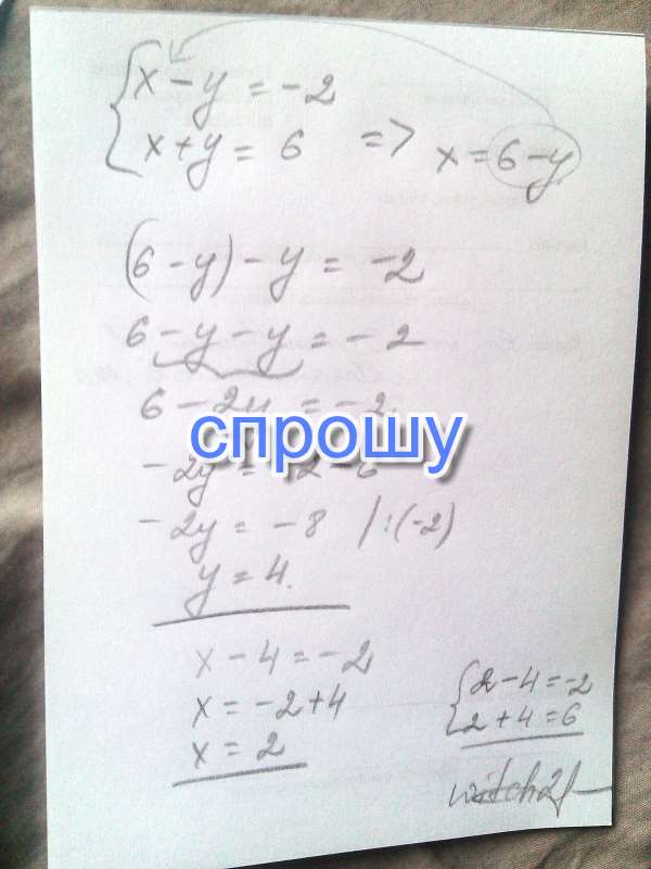 Решить уравнение методом подстановки х-у = -2 и х+у = 6
