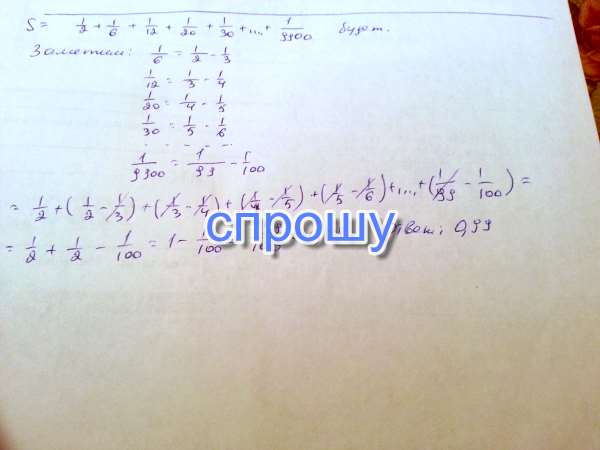 1/2+1/6+1/12+1/30+...+1/9900