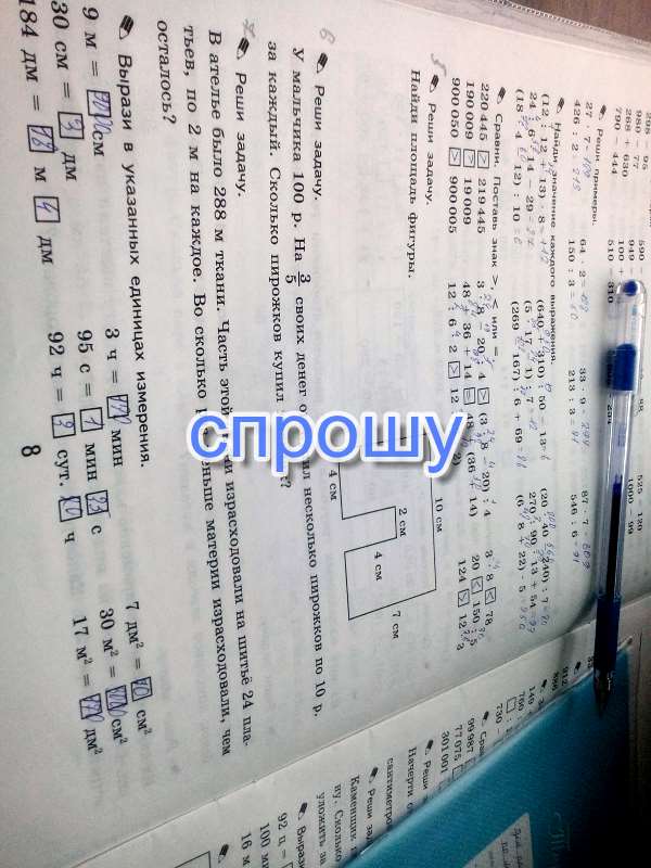 Площадь= 10х7=70 см кв. - площадь 2х4=8 см. кв.