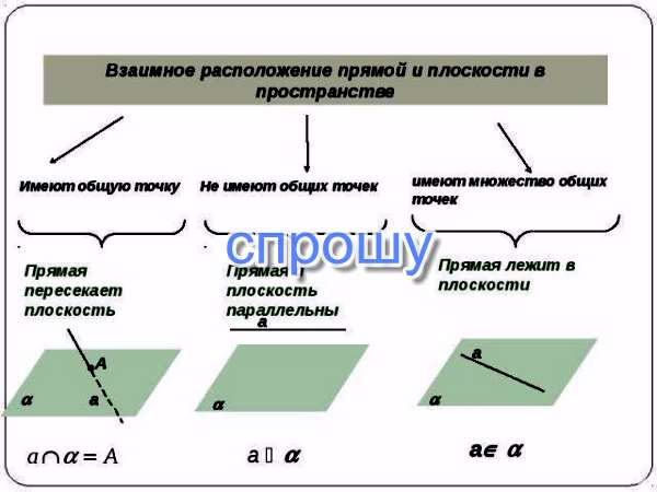Как могут расположены прямая и плоскость в пространстве ? Покажите на чертеже