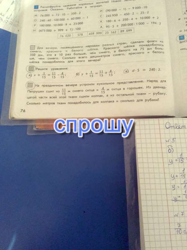 11/15+ 4/15 = 15/15 = 1м пошло на весь костюм.