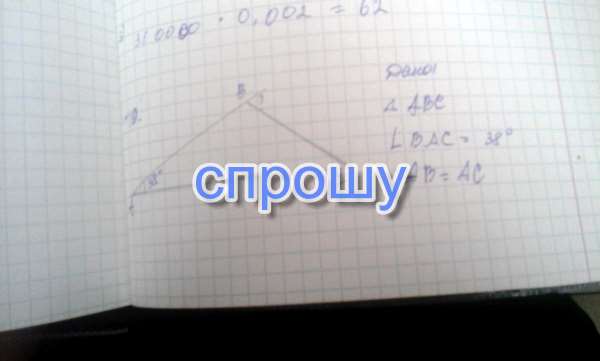 Треуголник АВС равнобедренный по условию, значит, углы при основании равны