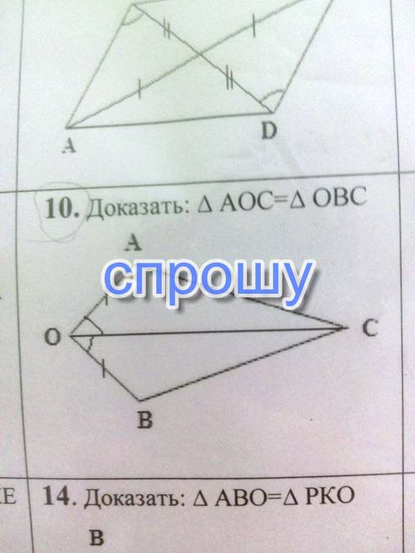 Сторона ОА=ОВ, угол АОС= углу СОВ, ОС общая сторона ,следовательно треугольники будут равны