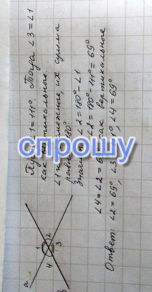 При пересечении двух прямых один из углов равен 111°. Найти остальные углы.