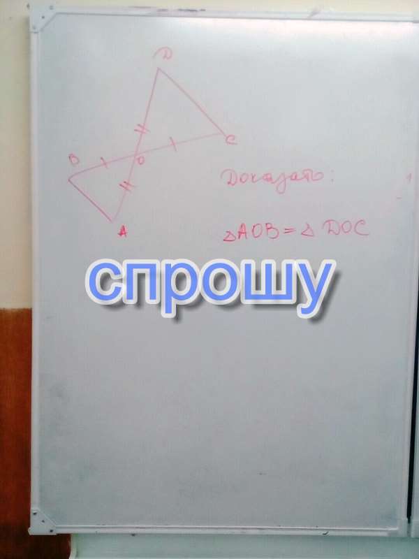 BOA=COD(вертикальные) ОА=ОD, BO=OC ( по условию )=gt; AOB=DOC( по 2-м сторонам и углу между ними)