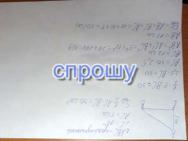 Найдите периметр прямоугольного треугольника если его площадь 30 а один из катетов 5