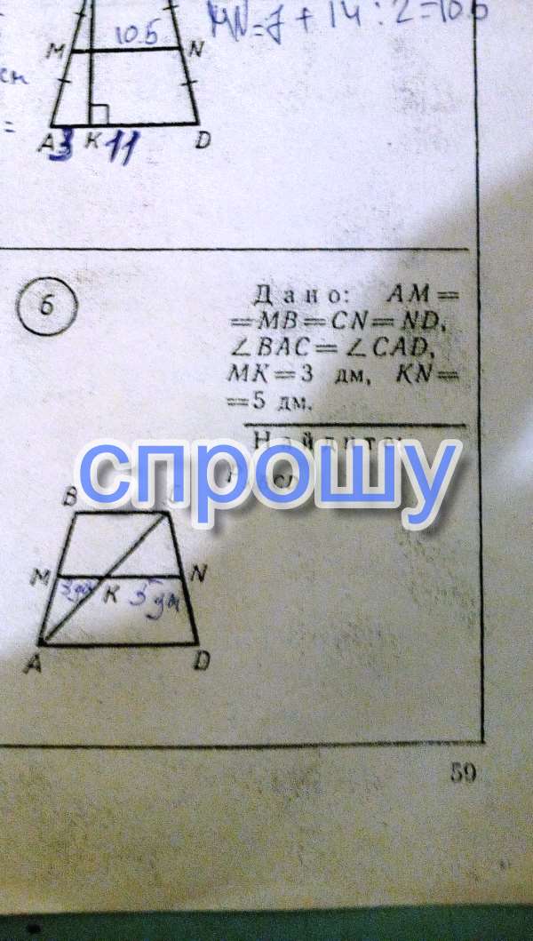 Дано AM = MB = CN = ND,угол BAC = углу CAD MK = 3дм,KN = 5дм Найти P ABCD