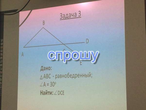 Т.к.треуг равноб то угол асб тоже 30градусов. углы асб и дсе вертикальные.следовательно угол дсе 30 градусов