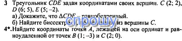 б) пусть СО-биссектриса. Т. к. тр-к равнобедр., то СО-медиана. Найдём координаты точки О: