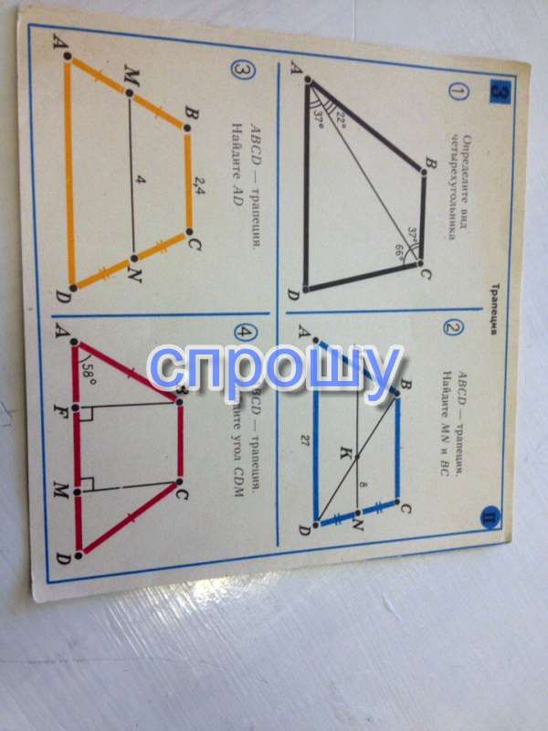 Задача 4. ABCD - равнобедренная трапеция, так как боковые стороны AB и CD равны ( это дано на рисунке).