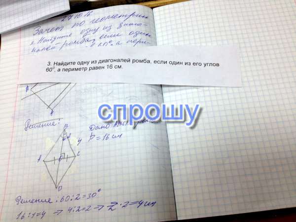 У ромба все стороны равны. Значит каждая сторона равна 16 : 4 = 4 см.