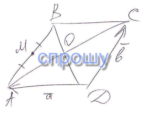 пересчения диагоналей, М-середина АВ, вектор ДА = вектору а,вектор ДС = вектору b.Выразите через векторы а и b следующие векторы: