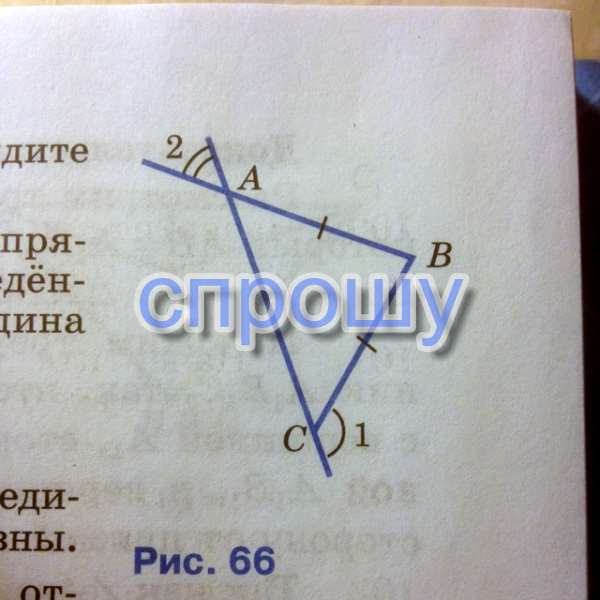 На рисунке 66 AB = BC, угол 1 = 130 градусов. Найдите угол 2