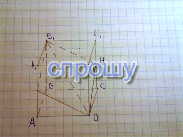 Постройте сечение Куба ABCDA1B1C1D1 плоскостью, проходящей через вершины B1, D и точку Н-середину ребра CC1.